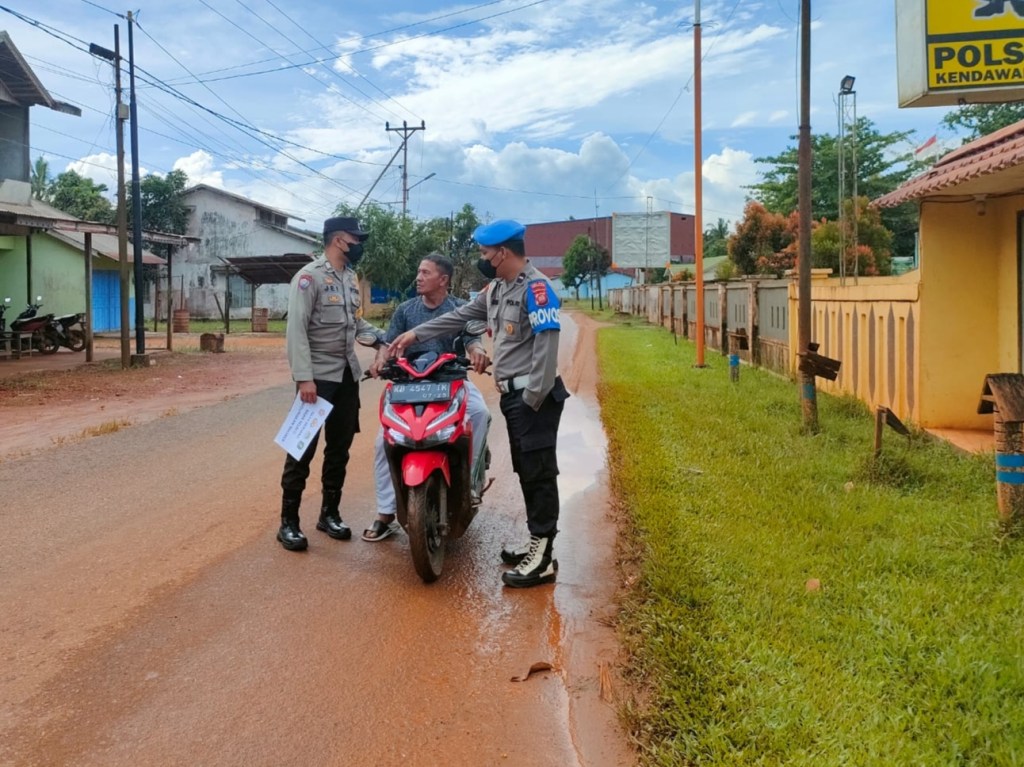 Kendawangan, Personil Polsek Kendawangan melaksanakan giat Sosialisasi / himbauan untuk mematuhi Prokes seperti penggunaan masker pada saat melakukan kegiatan di luar rumah