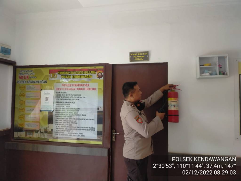 Kendawangan, Anggota Polsek Kendawangan yang melaksanakan piket jaga mako rutin melaksanakan pengecekan Apar ( Alat Pemadam Kebakaran ) yang berada di mako Polsek Kendawangan