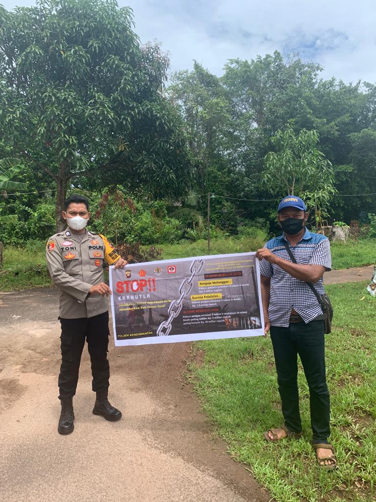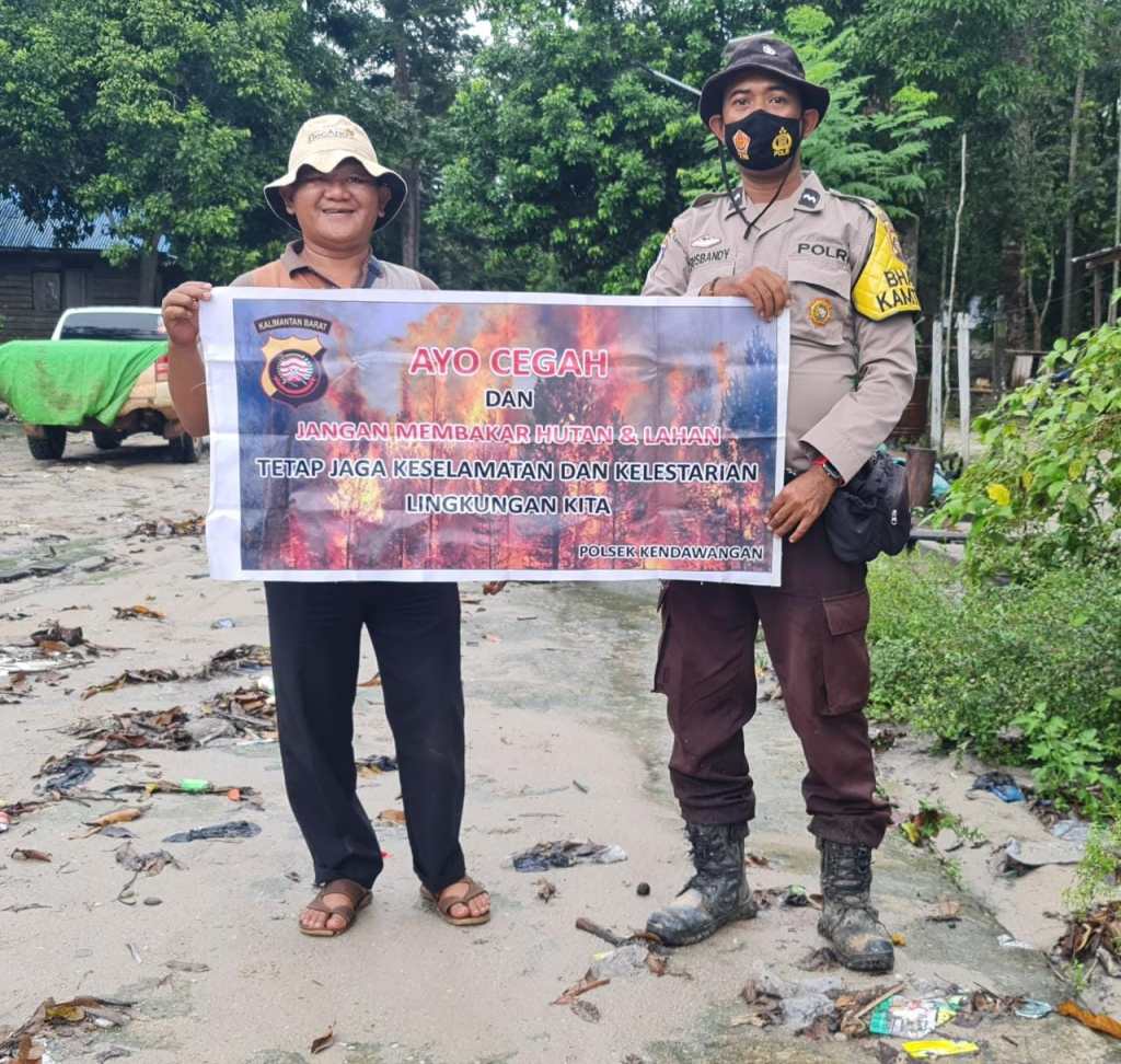 Pada kesempatan ini Bhabinkamtibmas Polsek Kendawangan Brigadir Toni J. Pisa mengajak seluruh masyarakat mari bersama sama mematuhi peraturan tentang larangan membakar hutan dan lahan.