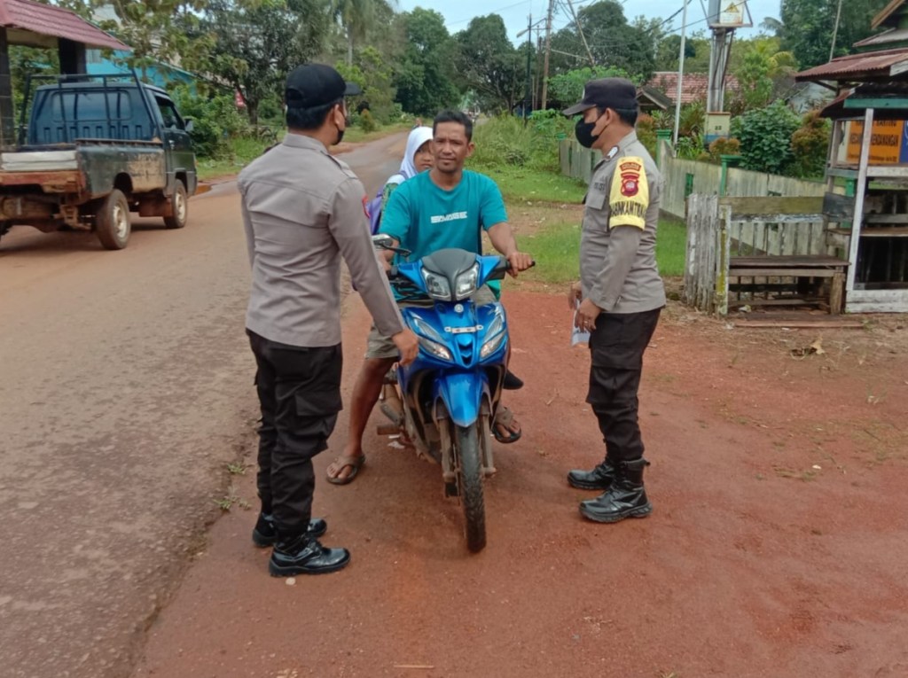Kendawangan – Anggota Bhabinkamtibmas Polsek Kendawangan aktif melakukan sosialiasasi himbauan tentang Karhutla kepada masyarakat di Kec. Kendawangan