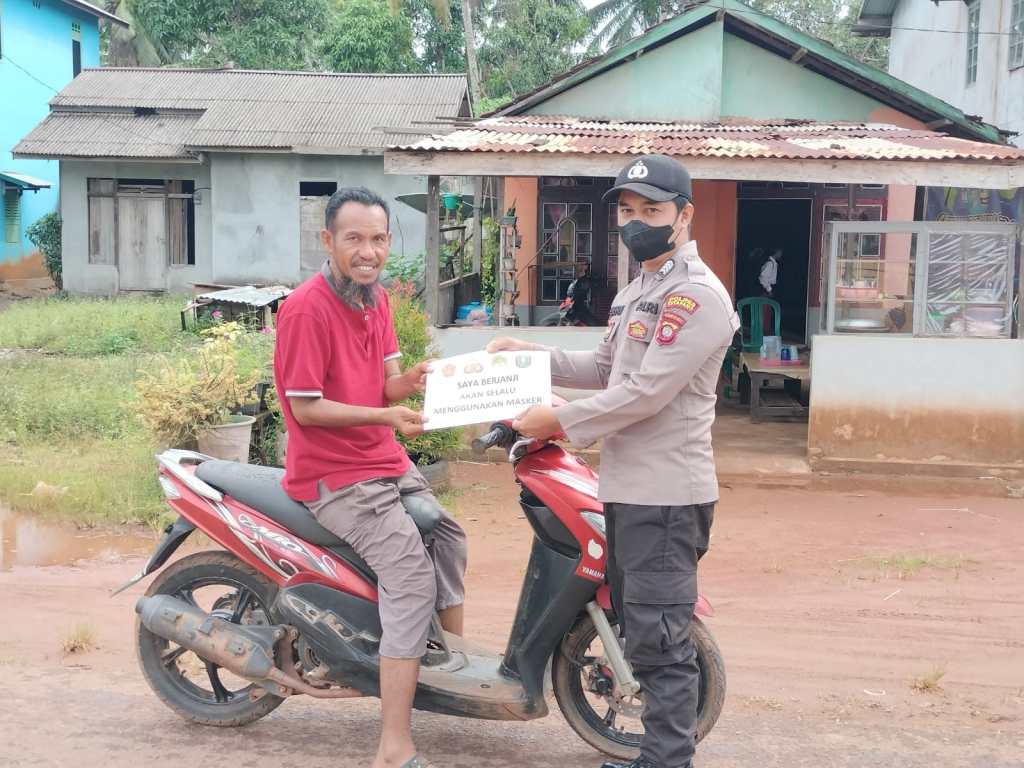 Giat Sosialisasi penggunaan masker di lakukan di depan Mako Polsek Kendawangan di Jl. Pangeran Cakra Desa Mekar Utama, Minggu (27/11/2022)