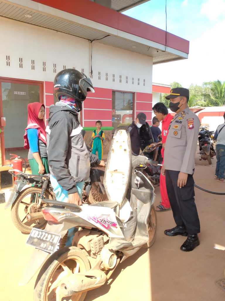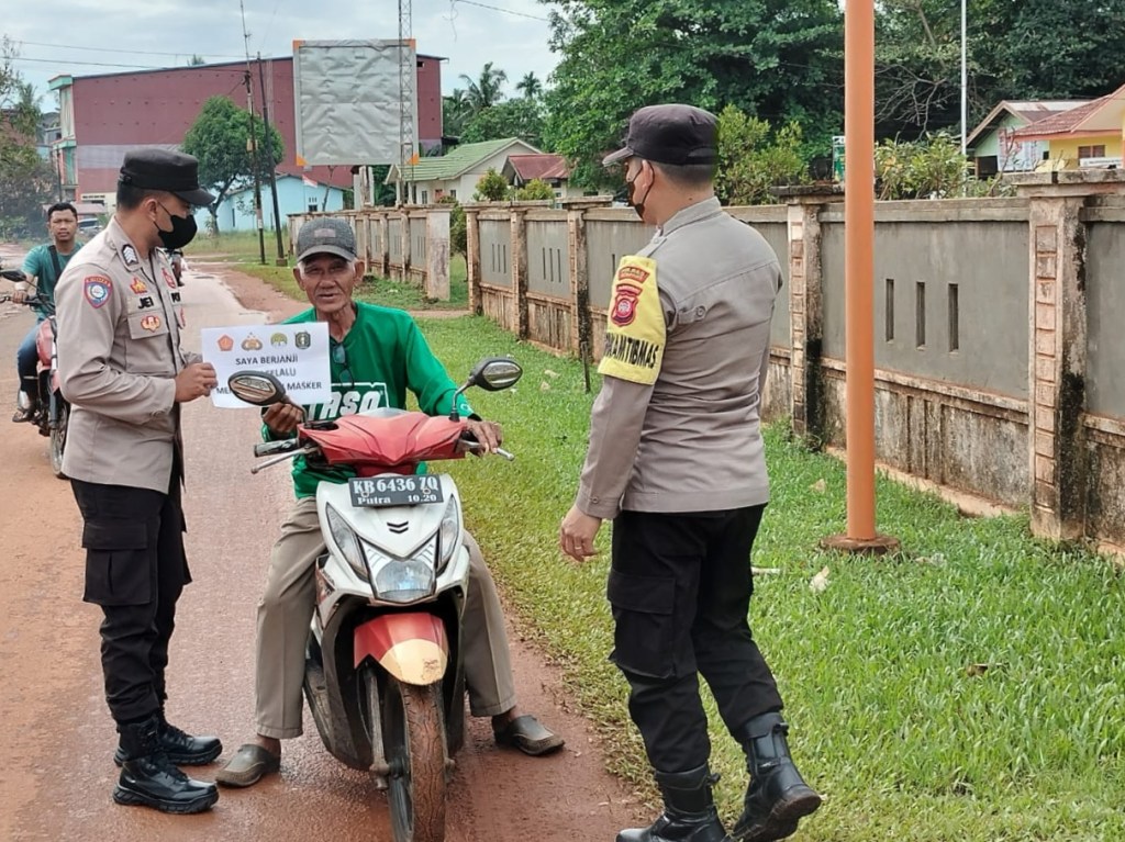 Kendawangan, Personil Polsek Kendawangan melaksanakan giat Sosialisasi / himbauan untuk mematuhi Prokes seperti penggunaan masker pada saat melakukan kegiatan di luar rumah