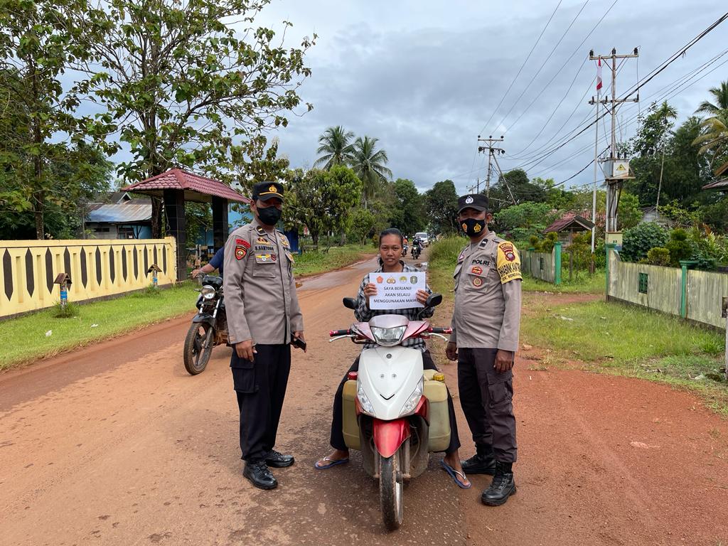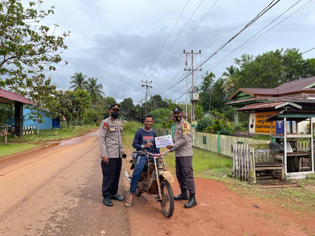 Kendawangan – Anggota Bhabinkamtibmas Polsek Kendawangan aktif melakukan sosialiasasi himbauan tentang Karhutla kepada masyarakat di Desa Air Hitam Hulu Kec. Kendawangan