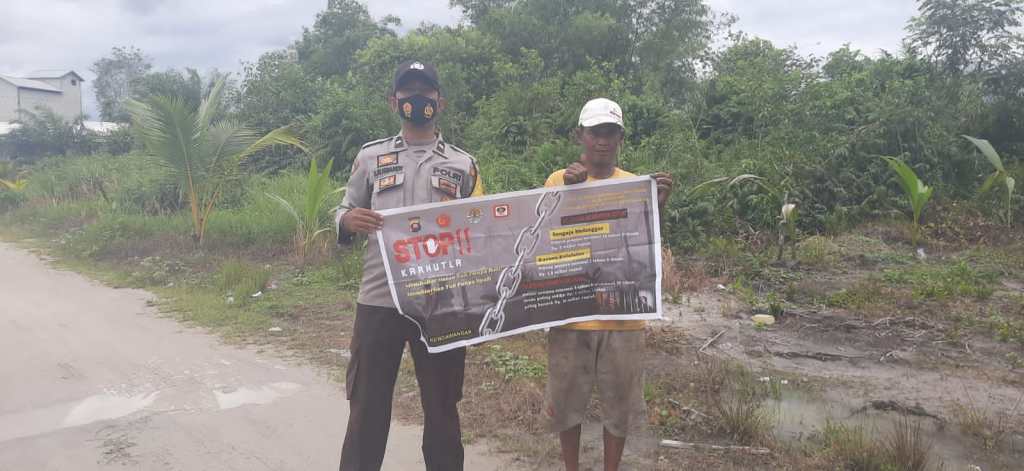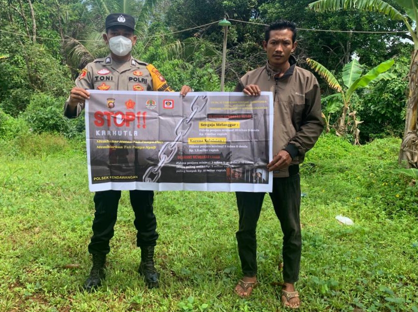 Pada kesempatan ini Bhabinkamtibmas Polsek Kendawangan Aipda Eko Rusbandi mengajak seluruh masyarakat mari bersama sama mematuhi peraturan tentang larangan membakar hutan dan lahan.