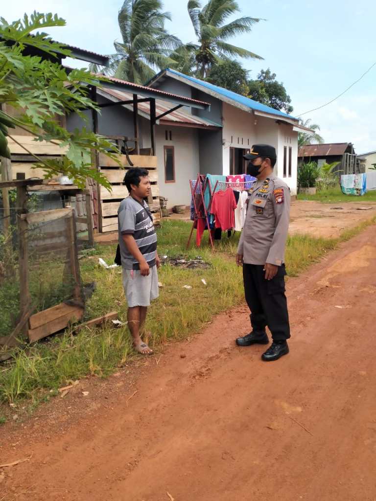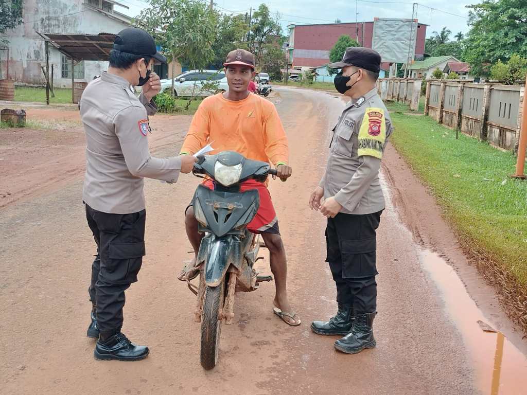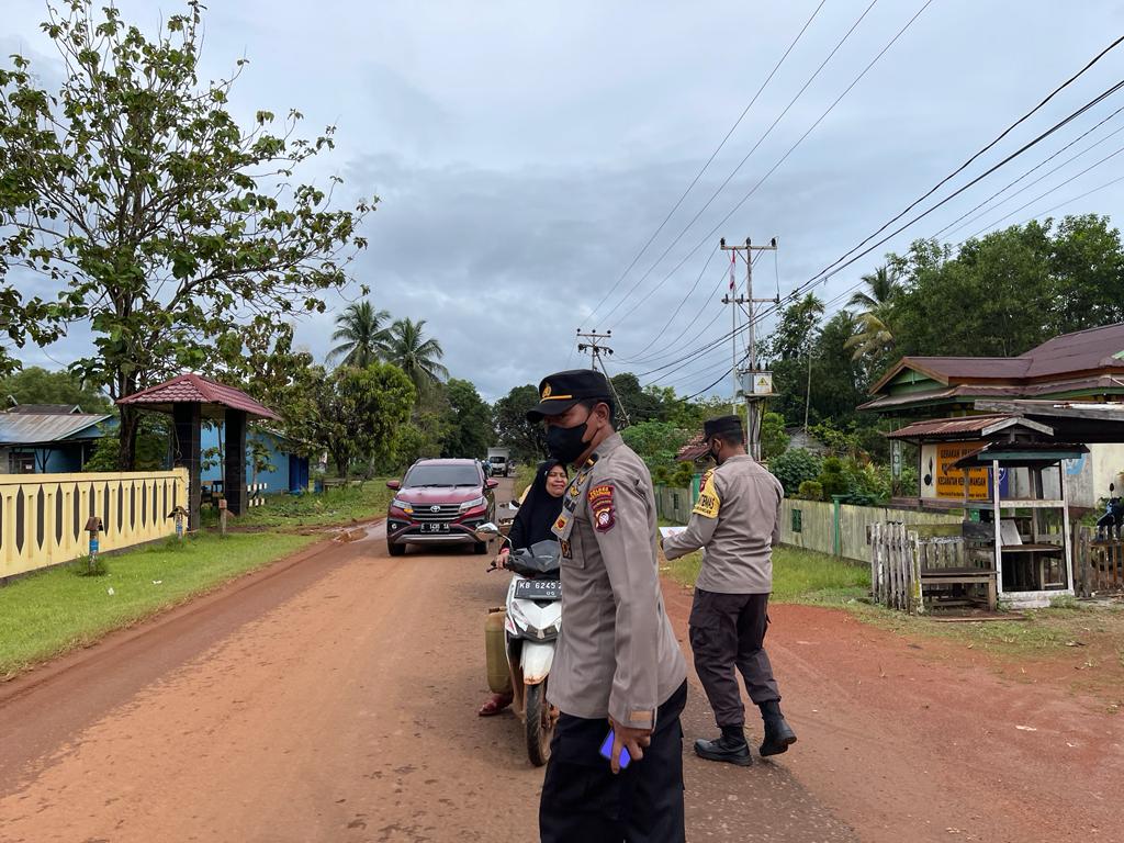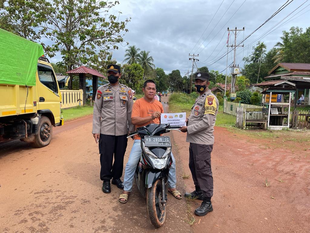 Kendawangan, Personil Polsek Kendawangan Polres Ketapang setiap hari melaksanakan giat Sosialisasi / himbauan untuk mematuhi Prokes seperti penggunaan masker pada saat melakukan kegiatan di luar rumah