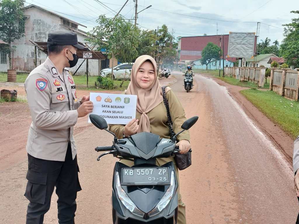 Giat Sosialisasi penggunaan masker di lakukan di depan Mako Polsek Kendawangan di Jl. Pangeran Cakra Desa Mekar Utama, Rabu (16/11/2022)