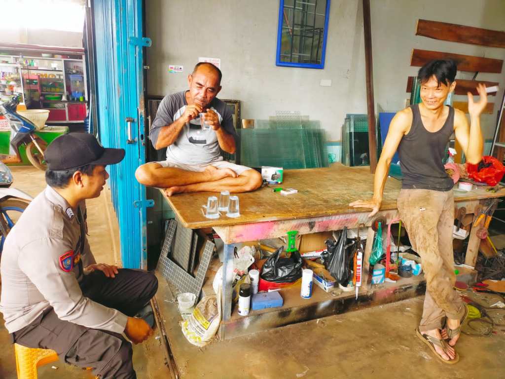 Dalam kesempatan tersebut, Ipda Slamet Santoso berdialog dengan warga tentang situasi Kamtibmas dan menyampaikan informasi apabila terjadi tindak pidana di tempat kerjanya