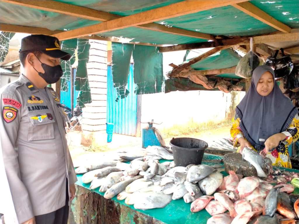 Kanit Samapta Polsek Kendawangan Ipda Slamet Santoso melaksanakan kegiatan Patroli dialogis menyambangi masyarakat yang sedang menjual ikan di Dusun Tanjung Desa Mekar Utama Kec. Kendawangan, Jum’at (11/11/2022).