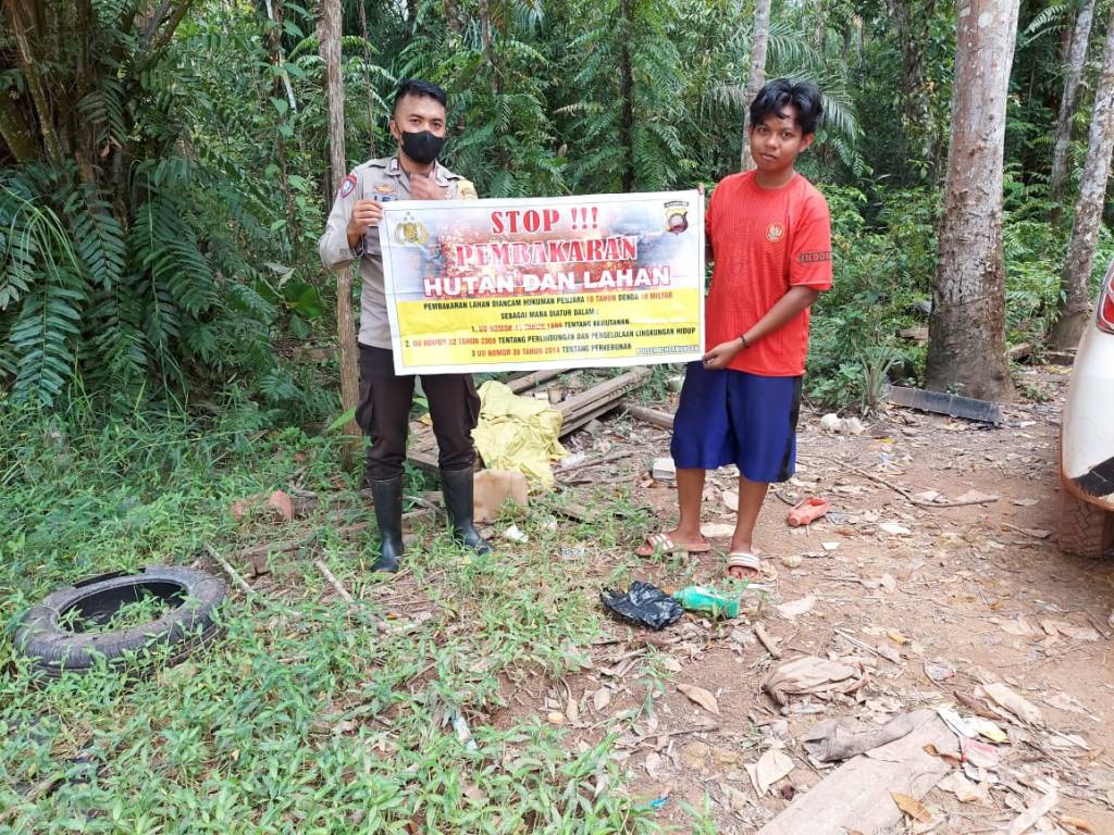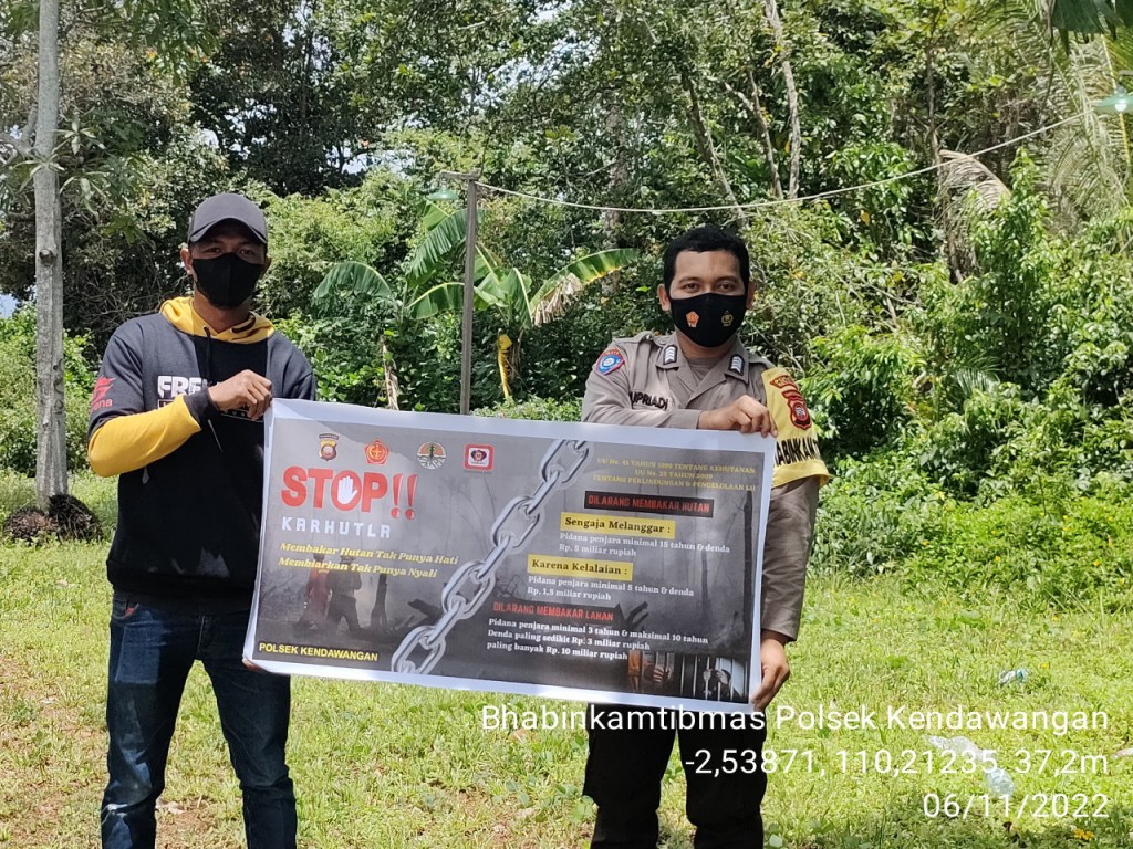 Pada kesempatan ini Bhabinkamtibmas Polsek Kendawangan Bripka Deni Supriadi mengajak seluruh masyarakat mari bersama sama mematuhi peraturan tentang larangan membakar hutan dan lahan.