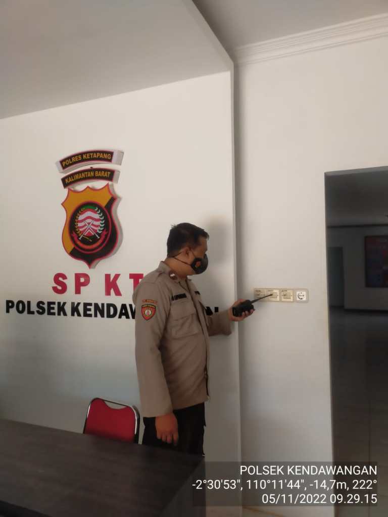 Seperti yang dilakukan oleh KA SPKT Regu C Aipda H. Suparman, selaku Anggota piket jaga mako Polsek Kendawangan pada hari Sabtu, (05/11/2022), mengecek seluruh instalasi listrik di Mako Polsek Kendawangan secara menyeluruh, dari dalam hingga keluar bangunan.