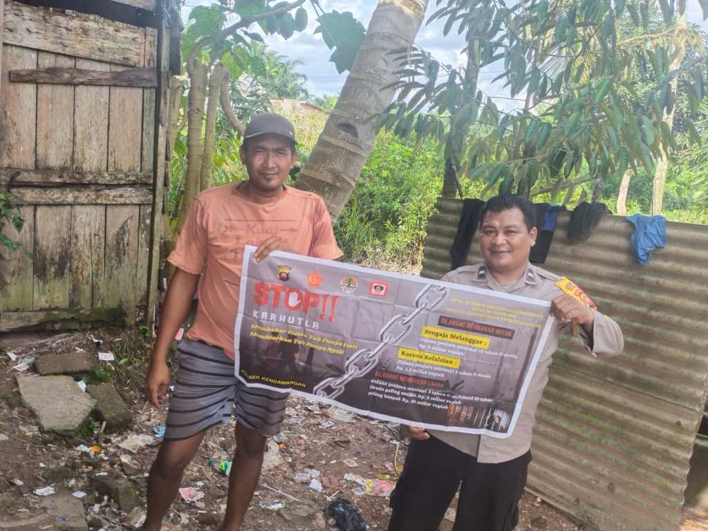 Pada kesempatan ini Bhabinkamtibmas Polsek Kendawangan Brigadir Toni J. Pisa mengajak seluruh masyarakat mari bersama sama mematuhi peraturan tentang larangan membakar hutan dan lahan.