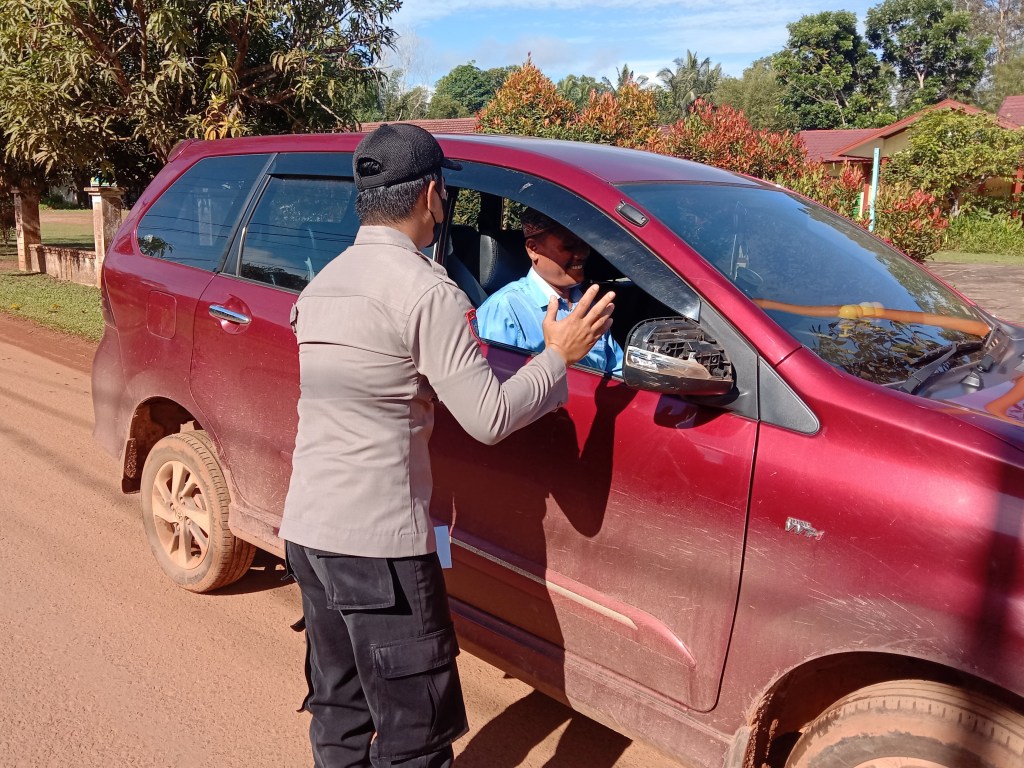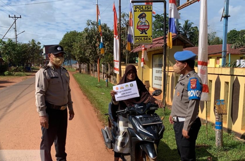 Kendawangan – Anggota Polsek Kendawangan melakukan Operasi Yustisi sosialisasi / himbauan penerapan protokol kesehatan penggunaan masker kepada masyarakat yang sedang melaksanakan kegiatan di luar rumah