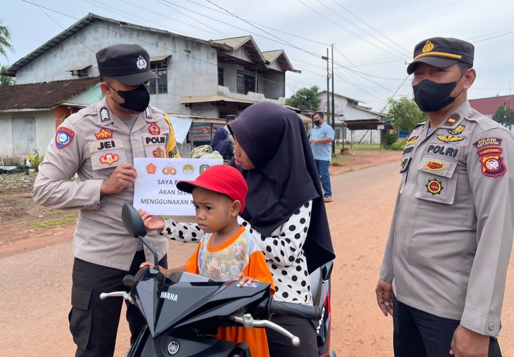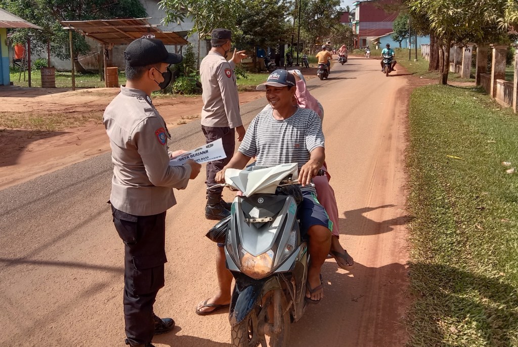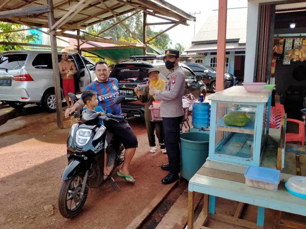 Dengan mengingatkan 5 M yakni : Memakai masker, Mencuci tangan, Menjaga jarak, Menghindari kerumunan dan Membatasi Mobilitas,” tutur Bripka Heri Yandi. ( F )
