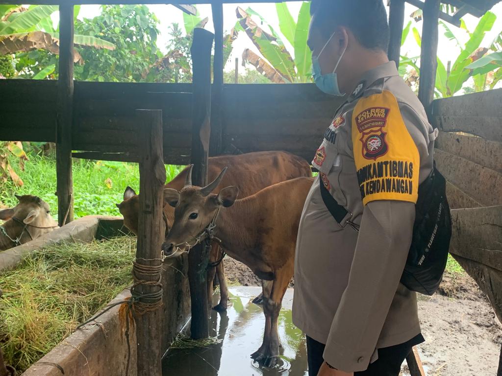 Kendawangan, Bhabinkamtibmas Polsek Kendawangan melakukan sambang ke kandang ternak milik masyarakat pada hari Selasa ( 02/08/2022 )