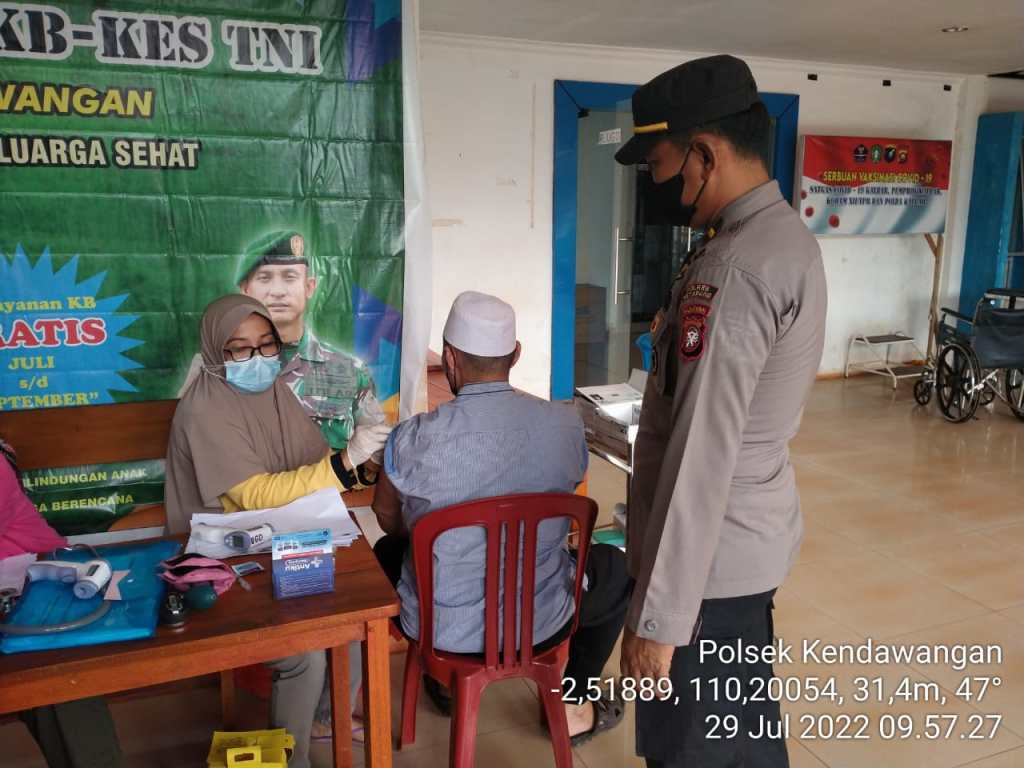 Pelaksanaan vaksinasi dilakukan di Puskesmas Kendawangan Desa Mekar Utama Kec. Kendawangan, Jum’at (29/07/2022) dan dilakukan pengamanan oleh Kanit Samapta Polsek Kendawangan yaitu Ipda Slamet Santoso