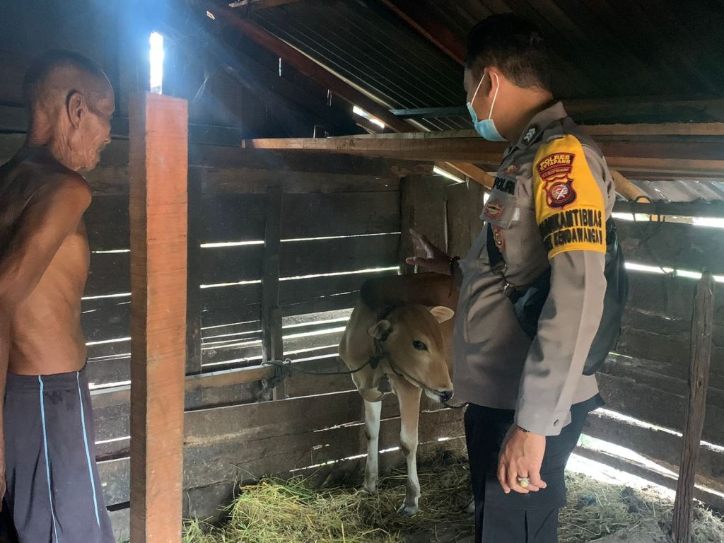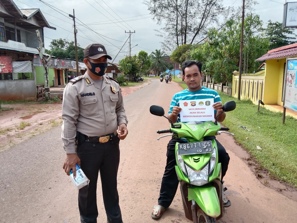 Seperti yang dilakukan oleh Bhabinkamtibmas Polsek Kendawangan Brigadir Toni J. Pisa saat mendapati warga yang sedang melintas di depan Mako Polsek Kendawangan dan kedapatan tidak menggunakan masker saat beraktivitas, Sabtu (16/7/2022).