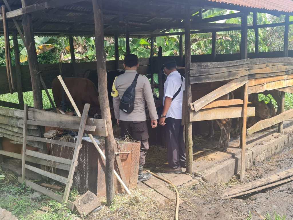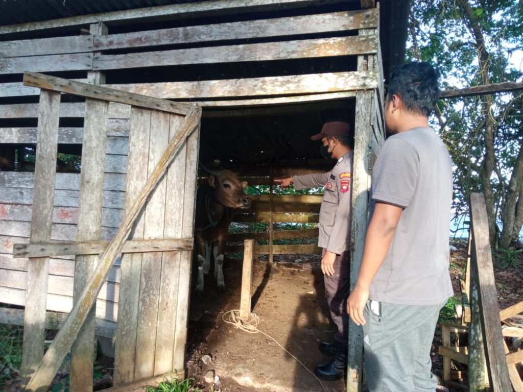 Kendawangan, Anggota Bhabinkamtibmas Polsek Kendawangan Brigadir Toni J. P melakukan sambang ke pemilik hewan ternak milik warga di Desa Mekar Utama Kec. Kendawangan pada hari Rabu ( 13/07/2022 )