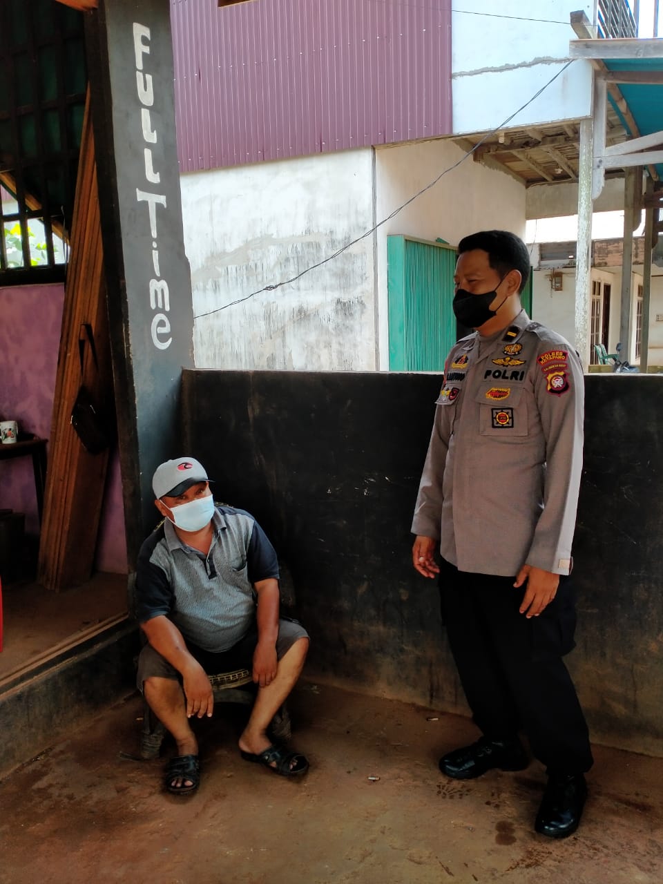 Kendawangan, Kanit Sabhara Polsek Kendawangan IPDA Slamet Santoso sambangi warga yang sedang melaksanakan aktivitas di Desa Krndawangan Kiri Kec. Kendawangan pada hari Minggu ( 22/5/2022 )
